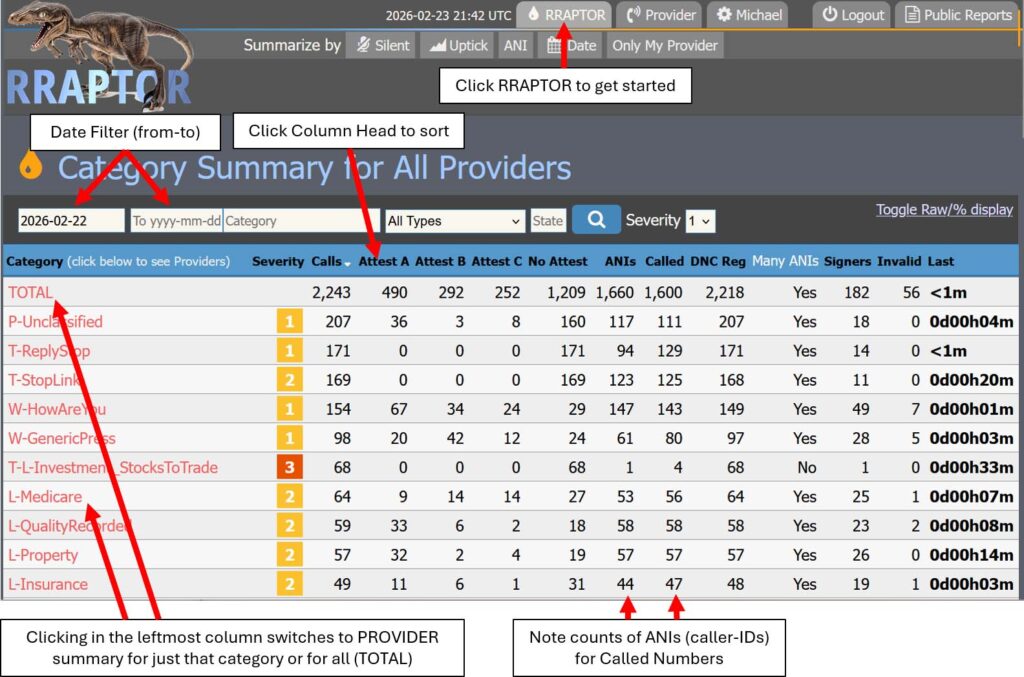 RRAPTOR is conceived as an automated, scalable tool that can keep pace with the constantly changing robocall landscape. Because a large fraction of those calls are signed, RRAPTOR can identify the providers that are accepting payment to facilitate them. This data, along with the underlying detail, allows: