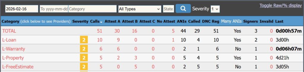 • Service providers to see with specificity potentially suspect calls that are passing through their network. Call details from RRAPTOR enable them to investigate and act swiftly to mitigate where appropriate. As a general rule, providers want to protect their reputation by ensuring that they sign only compliant calls. Some may only wish to sign calls that are likely wanted by the preponderance of recipients.